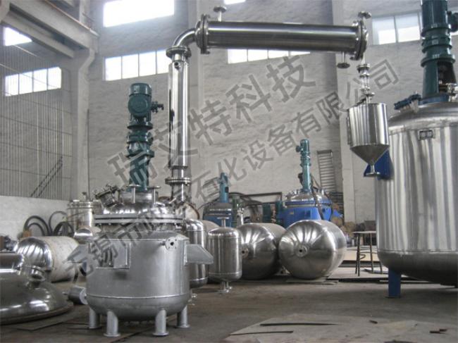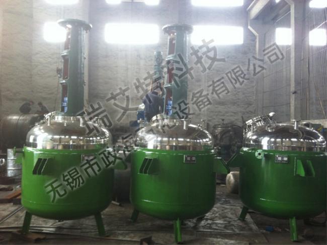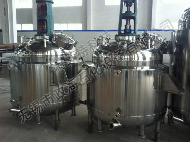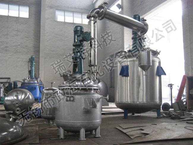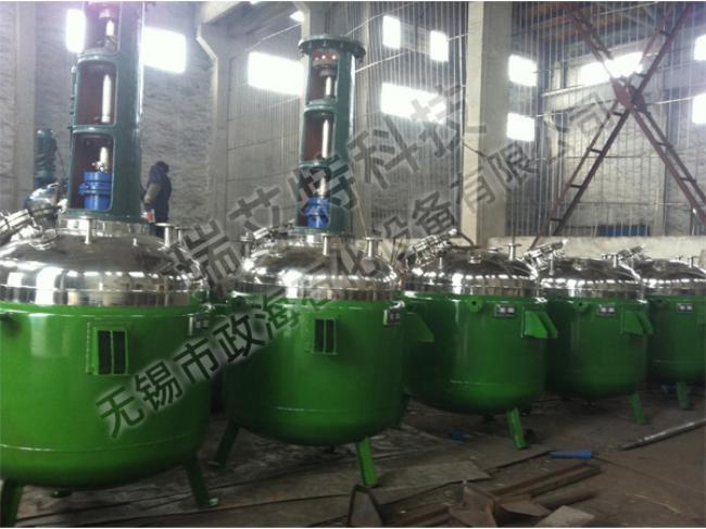 反应釜由锅体、锅盖、搅拌器、电加热油夹管、支承及传动装置、轴封装置、溢油槽等组成,并配有电加热棒及测温、测压表。