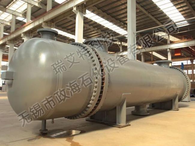 浮头式换热器的一端管板固定在壳体与管箱之间,另一端管板可以在壳体内自由移动,这个特点在现场能看出来。这种换热器壳体和管束的热膨胀是自由的,管束可以抽出,便于清洗管间和管内。其缺点是结构复杂,造价高(比固定管板高20%),在运行中浮头处发生泄漏,不易检查处理。浮头式换热器适用于壳体和管束温差较大或壳程介质易结垢的条件。